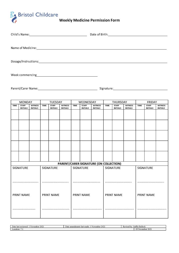 Illness – Appendix 2 Medicine Permission Form and Weekly Medicine Permission Form Click to download printable document – Medicine Permission Form (210kb) Click to download printable document – Weekly Medicine Permission Form (133kb)