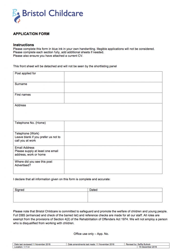 Recruitment – Appendix 2 Application Form Click to download printable document – application-form (89kb)